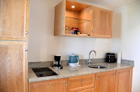 My one bedroom Beachfront Suite was newly renovated (the resort just completed an extensive renovation on the rooms and facilities), and straight out of a design magazine. Decorated in soothing whites and blues that mirrored the colors of the water and sand just beyond my balcony, it was the perfect retreat from the hustle and bustle of other parts of St. Martin. The large bathroom featured a rain shower and window overlooking a small private garden area. Add in lots of fluffy white towels (don't you hate it when hotels only give you 2 towels?) and L'Occitane toiletries, and I was one happy girl! A separate kitchenette completes the suite - not sure who would cook while staying here, but the fridge and icemaker definitely came in handy during my stay!